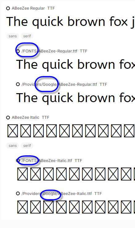i have a Google fonts as provider and i have a …\fonts folder (aznd then tere is .fontbase).