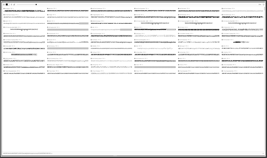 Just to confirm what I see on my large 4k monitor, I can see the fonts clearly enough in sizes as low as 20px. In grid view it gives me a good preview of many characters at the same time so that I can scan and review things much more quickly: