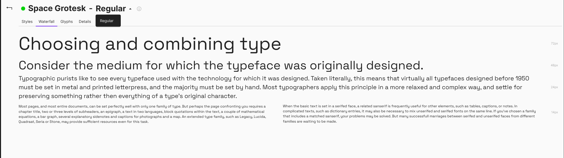 Hi, thanks for the advice. In the specific case of the Space Grotesk font, if I go as you suggested, to the family and then to waterfall, I can’t see the other font weights.