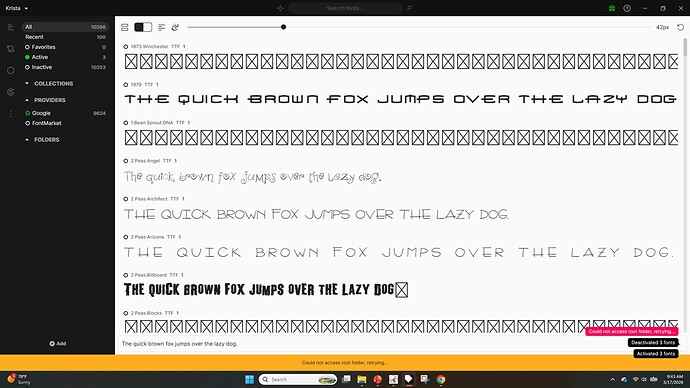 Have you perhaps already checked if the root folder (location visible in the Settings page) exists and contains your fonts?