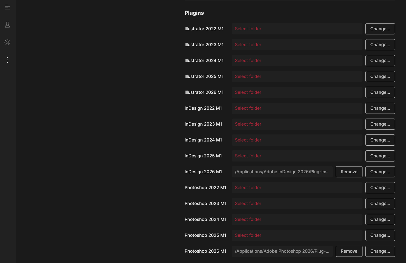 Hi Yuriy, the Settings page points correctly to InDesign and Photoshop. Both programs launch with no problems and the fonts auto-activate. However, the current version of FontBase I downloaded for the Mac (I use Tahoe 26.2 OS) is missing the Illustrator plug-in.